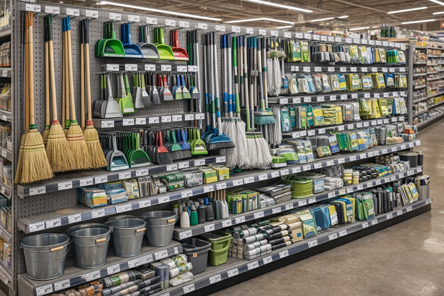Tupperwares, vassouras, sacos lixo, produtos de limpeza e muito mais artigos para comercializar no seu negócio.