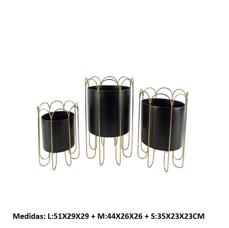 METAL- CONJ. 3 SUPORTES C/VASO PRETO 29X29X51CM